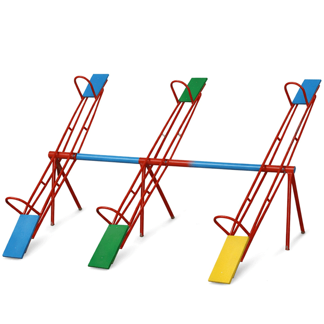 Gangorra infantil fabricada em ferro com 3 pranchas e 6 lugares.