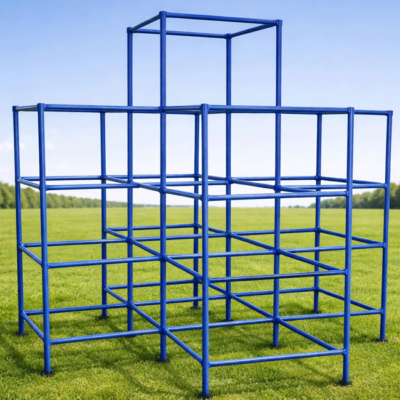 CASINHA DO TARZAN TIPO TANKER FABRICADA EM TRONCO DE EUCALIPTO AUTOCLAVADO COMPOSTO POR 04 MÓDULOS DESCOBERTOS, 01 CASINHA COBERTA, 01 ESCALADA DE REDE INTERLIGANDO 02 MÓDULOS, 01 ESCALADA DE RAPEL NA CASINHA, 01 PONTE PENSIL DE 2 M COM GUARDA CORPO EM CORDA, 01 ESCORREGADOR, ESCADA FIXA COM CORRIMÃO E APOIO DE SUBIDA AO LADO DO ESCORREGADOR E 01 BALANÇO DE DOIS LUGARES COM ASSENTOS DE MADEIRA SUSPENSOS POR CORRENTE ENCAPADA COM MANGUEIRA FLEXÍVEL E PRESOS AO TRAVESSÃO ATRAVÉS DE ROLDANAS. ACABAMENTO OSMOCOLOR CASTANHO UV DECK, ÁREA DE OCUPAÇÃO 3M X 4M X 7M (CONSIDERAR 1,5 M ADICIONAL PARA CIRCULAÇÃO)